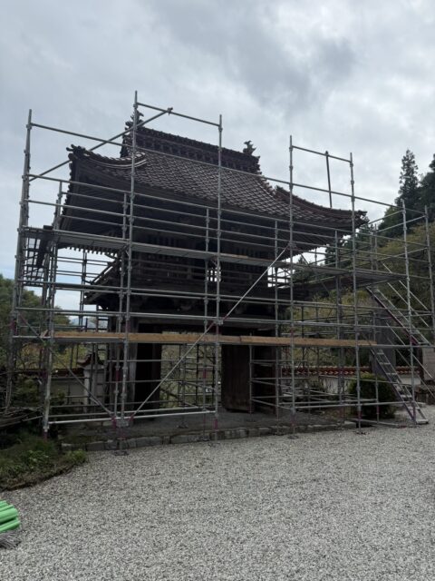 株式会社聖建設が行なった山門の屋根改修工事の足場工事についてご紹介いたします。